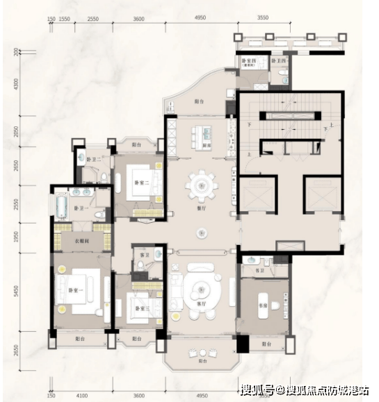 具体在售户型包括236㎡五房二厅五卫、264㎡五房二厅五卫、317㎡六房二厅六卫、398㎡六房三厅五卫,以及500㎡以上大平层与1200㎡、1600㎡空中复式尊邸。其中,236-398㎡大平层主打舒适宜居,户型布局方正、空间宽敞,十字中轴九宫格设计,四开间望江,采光通风极佳,满足多代同堂的居住需求;500㎡以上大平层与空中复式则主打顶奢体验,空间开阔、视野极佳,270°瞰江观景,搭配高端装修与专属配套,彰显峯层人士的极致品味与身份,是家族传承的传世之作。